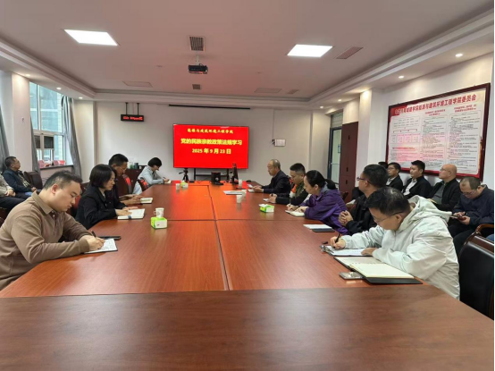 (通讯员 牛哲荟)2025年9月23日,能源与建筑环境工程学院组织开展党的民族宗教政策法规集中学习活动。学院党委书记赵兴涛主持,九三学社河南城建学院支社主委李奉翠、新入职教师、党员教师以及党外知识分子共同参与。