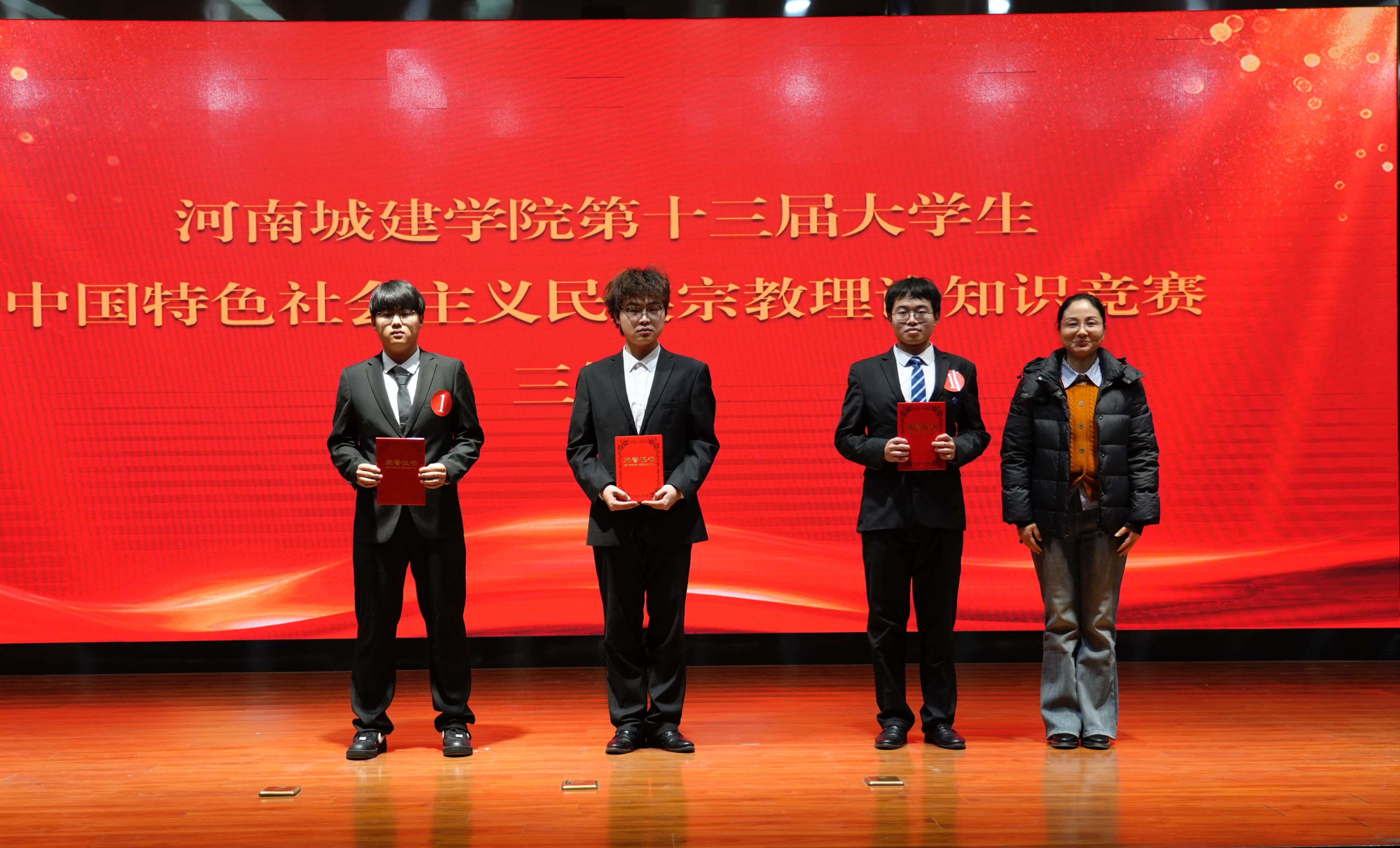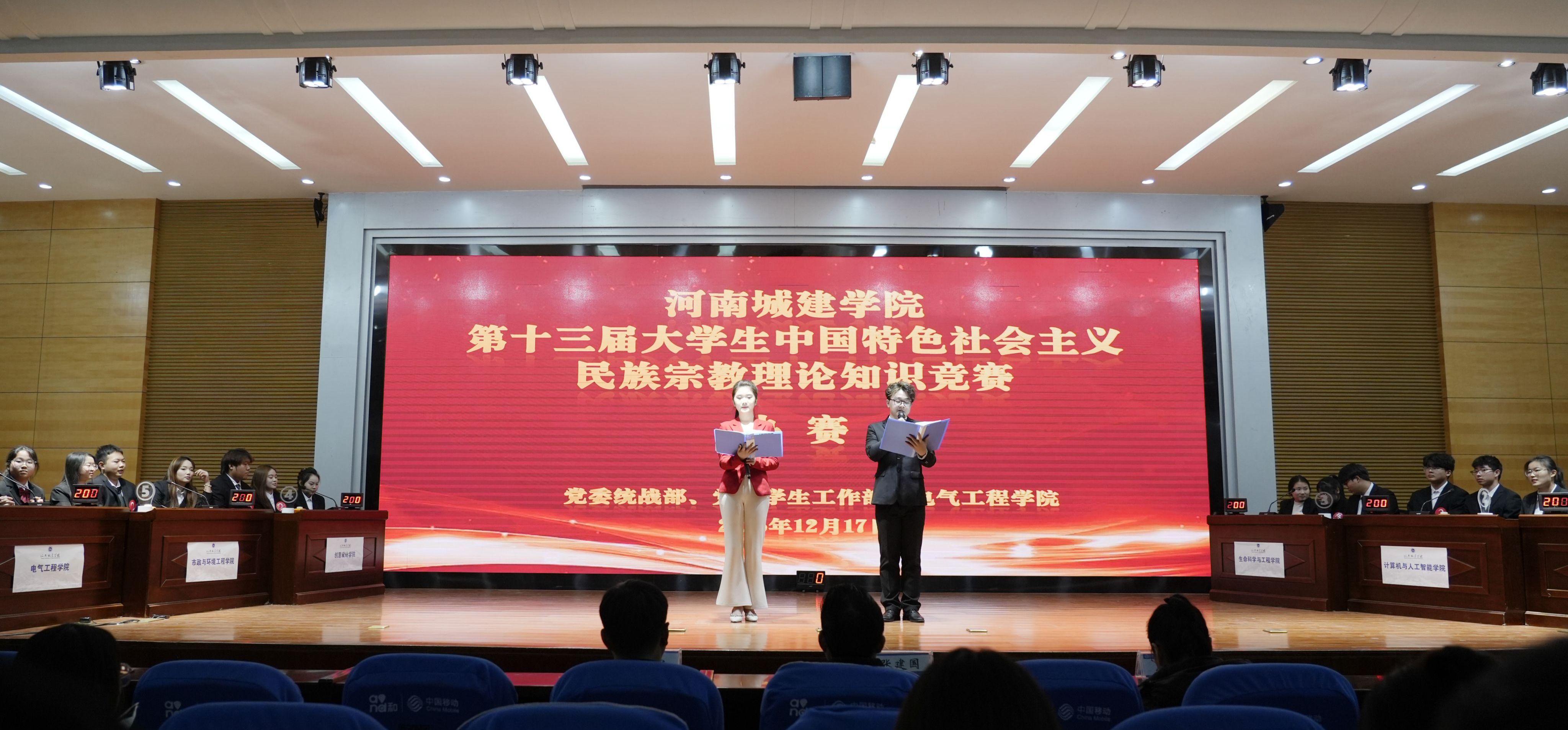 12月17日下午,由党委统战部、党委学生工作部主办,电气工程学院承办的第十三届大学生中国特色社会主义民族宗教理论知识竞赛在行政楼学术报告厅举行。校党委副书记、工会主席王靖出席决赛并颁奖,党委宣传部、党委统战部、党委学工部、校团委等单位负责人、各二级学院相关领导、师生代表观摩决赛。